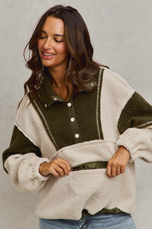 Olive ColorBlock Sherpa