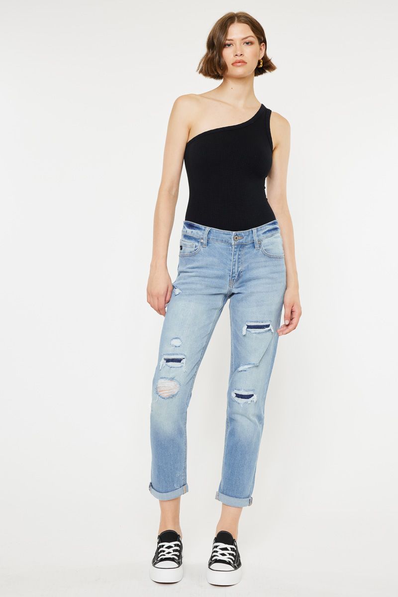 Mid Rise Double Cuff Hem Slim Boyfriend Fit